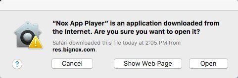 1. The first time you open Nox App Player (or any downloaded application), you’ll see a warning. Agree to open the file and you won’t see the warning again. We suggest that you also tick the “Don’t warn me when opening application on this disk image” box.